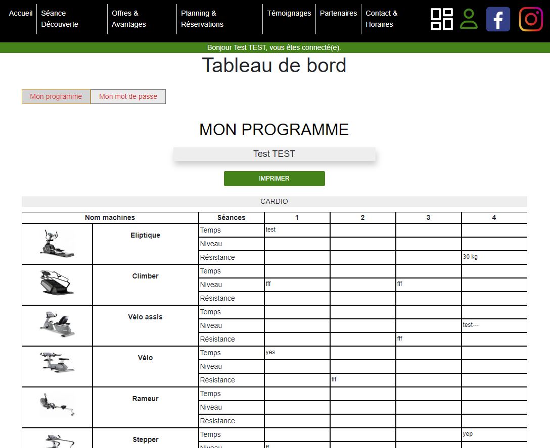 • Accès à son programme de fitness