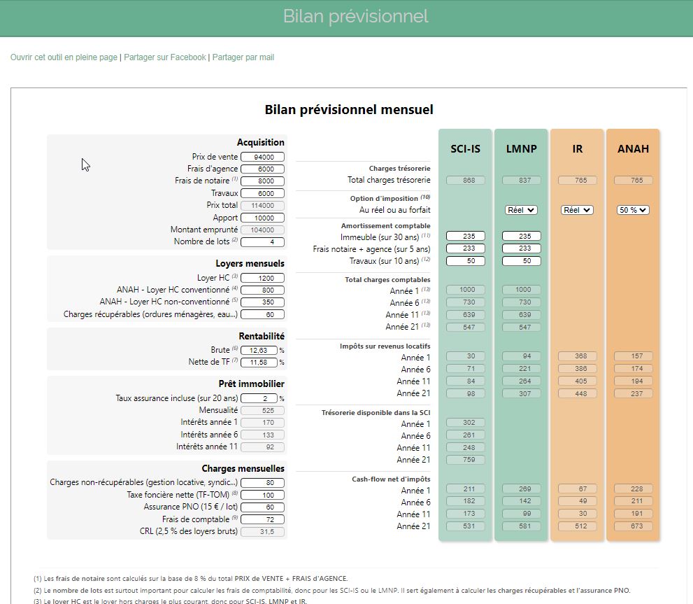 • Outils de comparaison de bilans prévisionnels selon le régime fiscal choisi