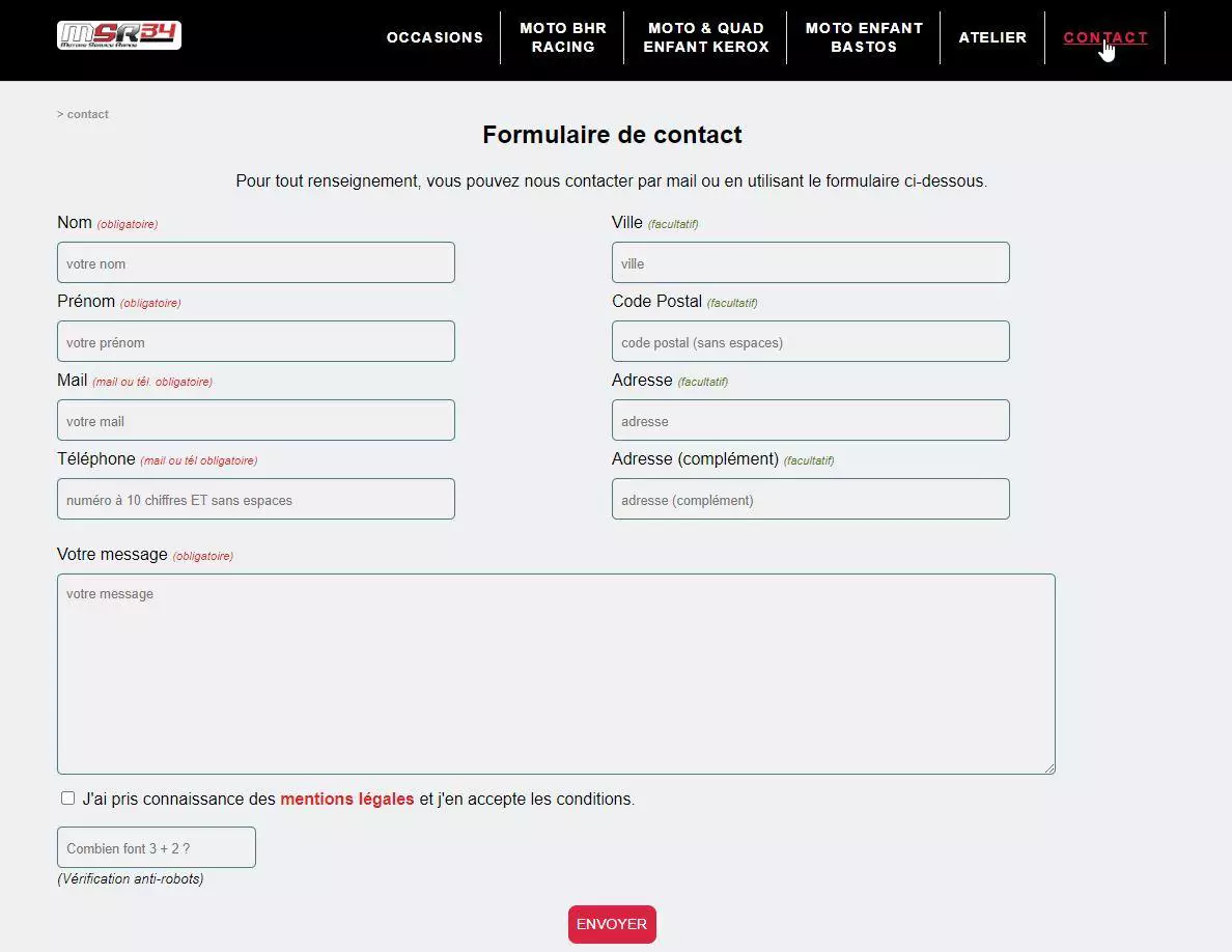 • Formulaire de contact
