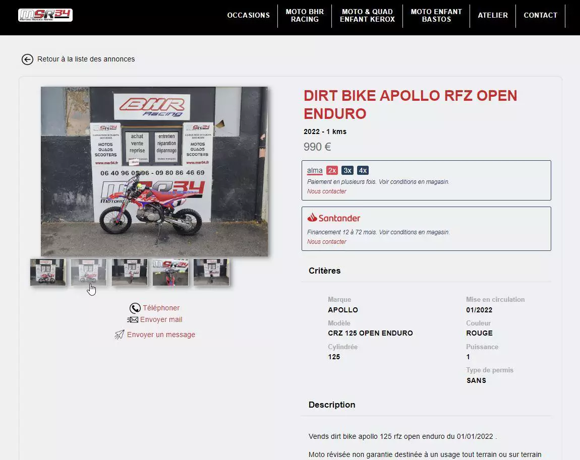 Site vitrine d'un magasin de motos d'occasion.