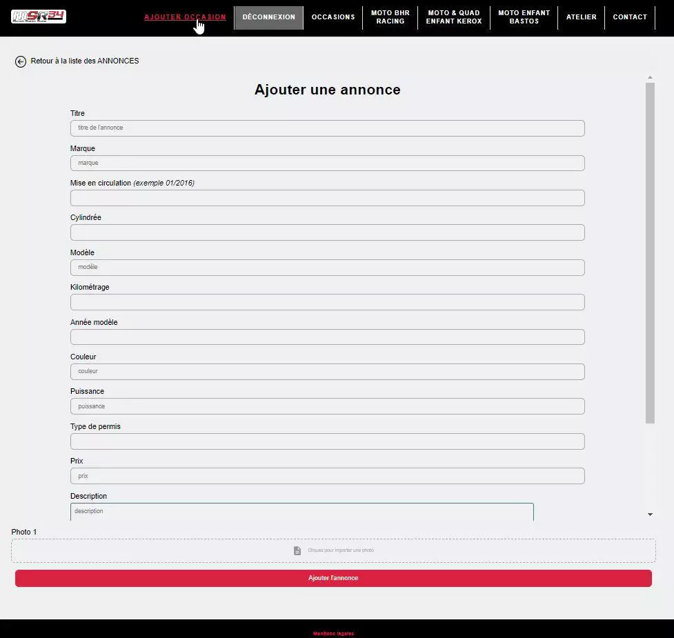 • Publication/Gestion des annonces de vente de motos