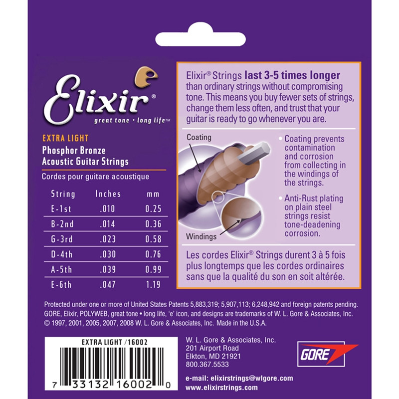 Elixir a enveloppé ses cordes d’une couverture qui forme un tube de polymer plus fin qu’un cheveu. Les cordes sont ainsi protégées et restent au meilleur de leur forme!