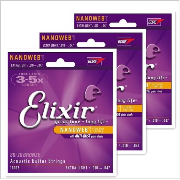 3 jeux de cordes Guitare Acoustique – NanoWeb – Extra Light.