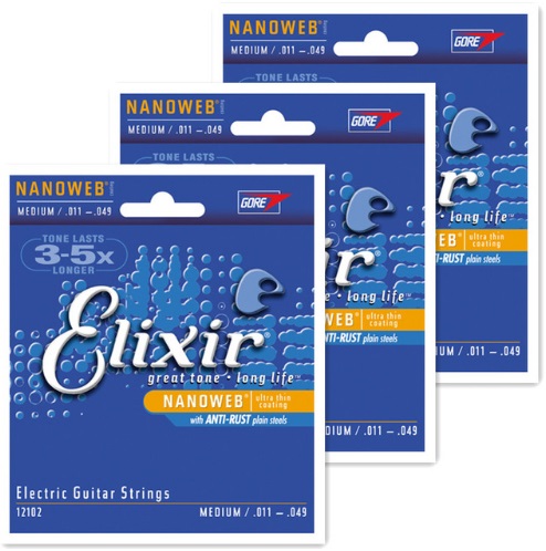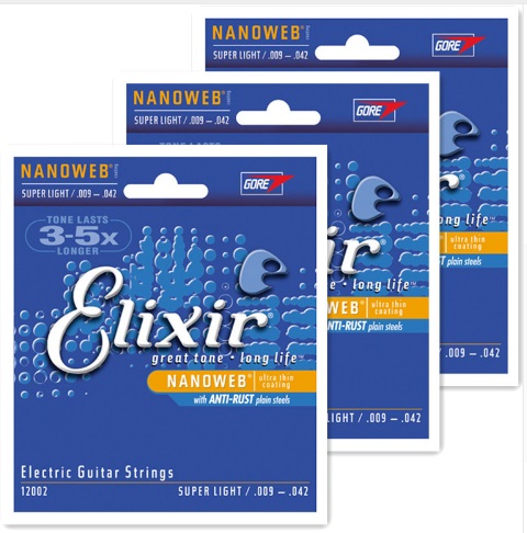 3 jeux de cordes ELIXIR Nanoweb Electrique Light .010 – .046