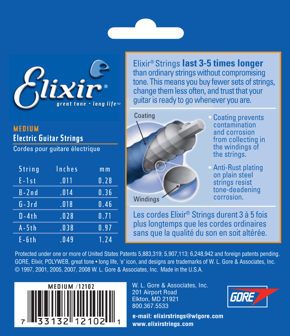 Elixir a enveloppé ses cordes d’une couverture qui forme un tube de polymer plus fin qu’un cheveu. Les cordes sont ainsi protégées et restent au meilleur de leur forme!