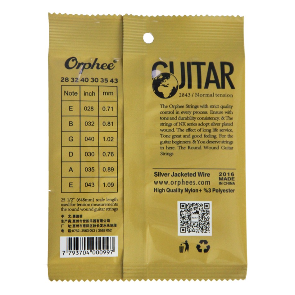 Les 4ème, 5ème et 6ème cordes sont faites de noyau de nylon de haute qualité avec une doublure en fil métallique en argent.